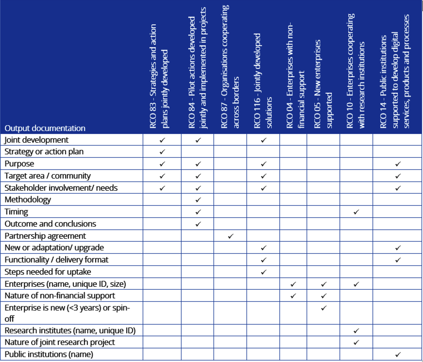 To document the achievement of an output or result, projects are expected to complete a checklist in the corresponding project report in Jems. The checklists are designed according to the relevant indicator definition, making it easier to meet the indicator requirements.